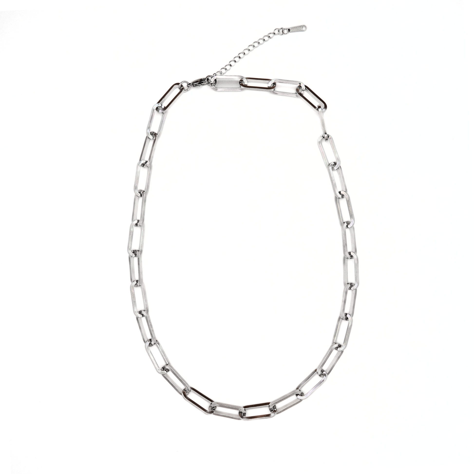 The Baddie necklace brings understated drama to any ensemble—its broad, flat chain subtly catches the light, offering a bold yet wearable statement. Crafted from hypoallergenic 316L stainless steel, it resists tarnish, water, and allergens, maintaining its radiant shine through everyday wear.