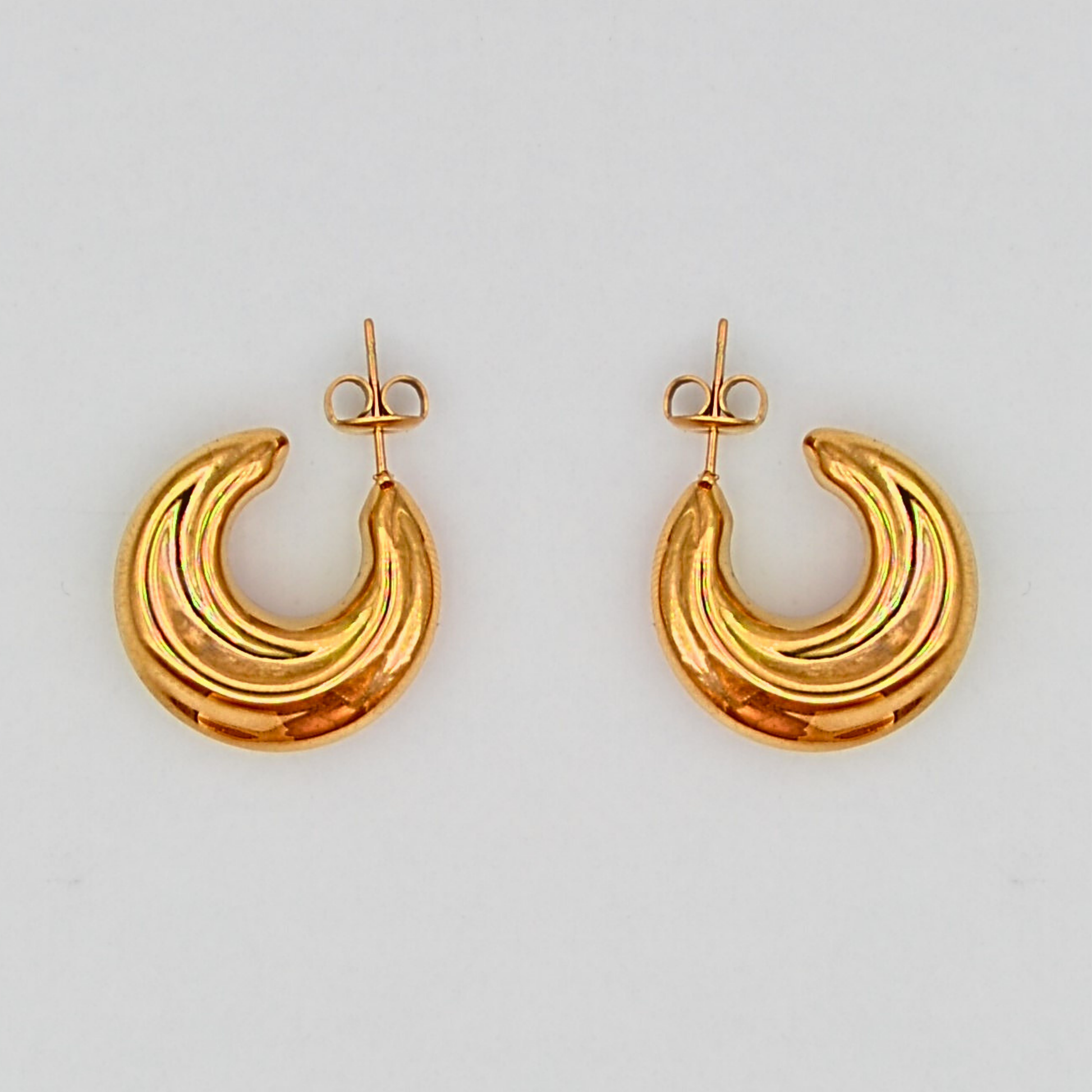 The Spookie earring brings together classic allure and modern strength with its sophisticated form. Crafted from hypoallergenic 316L stainless steel and lavishly plated with 18K gold, it resists tarnish for long-lasting elegance and daily wear.